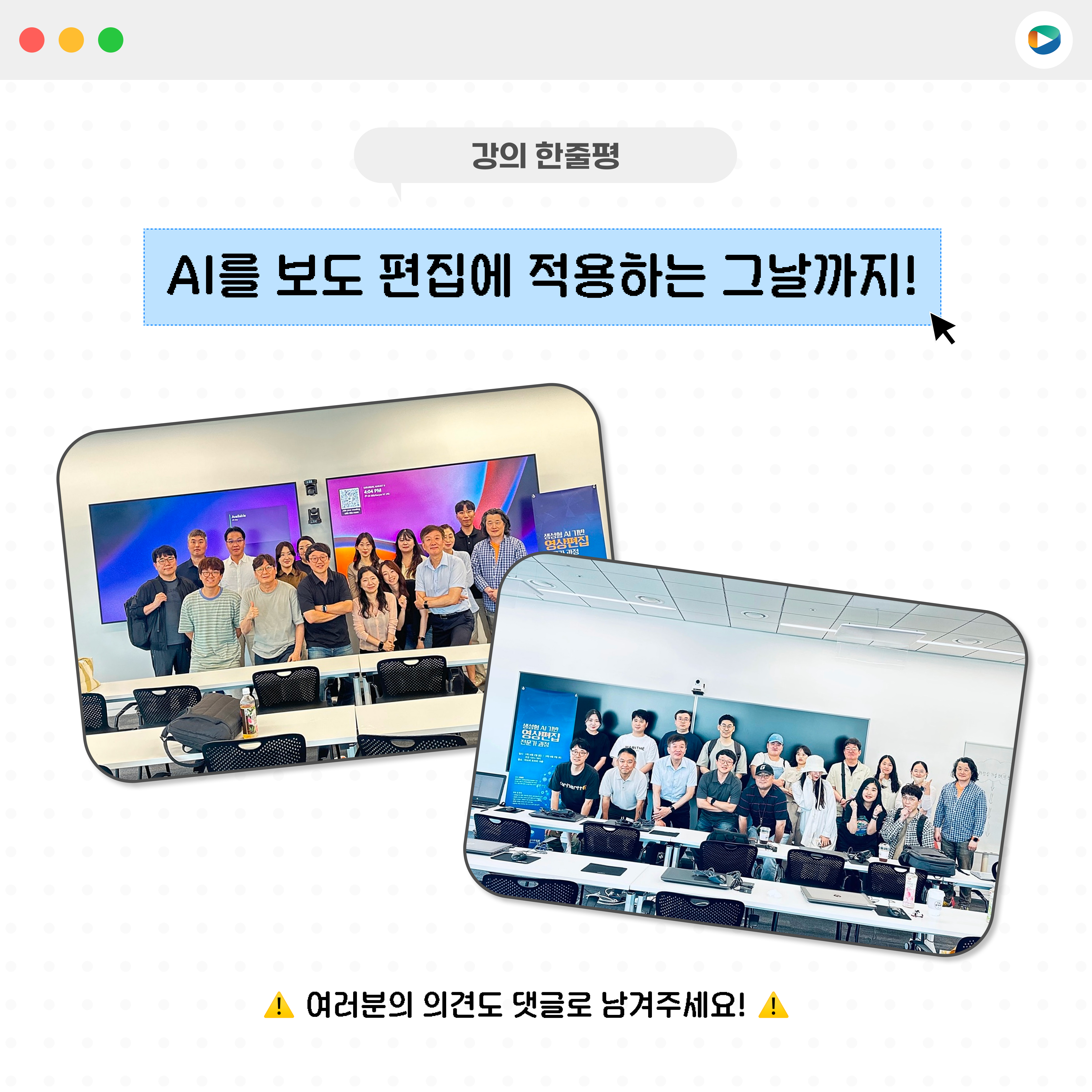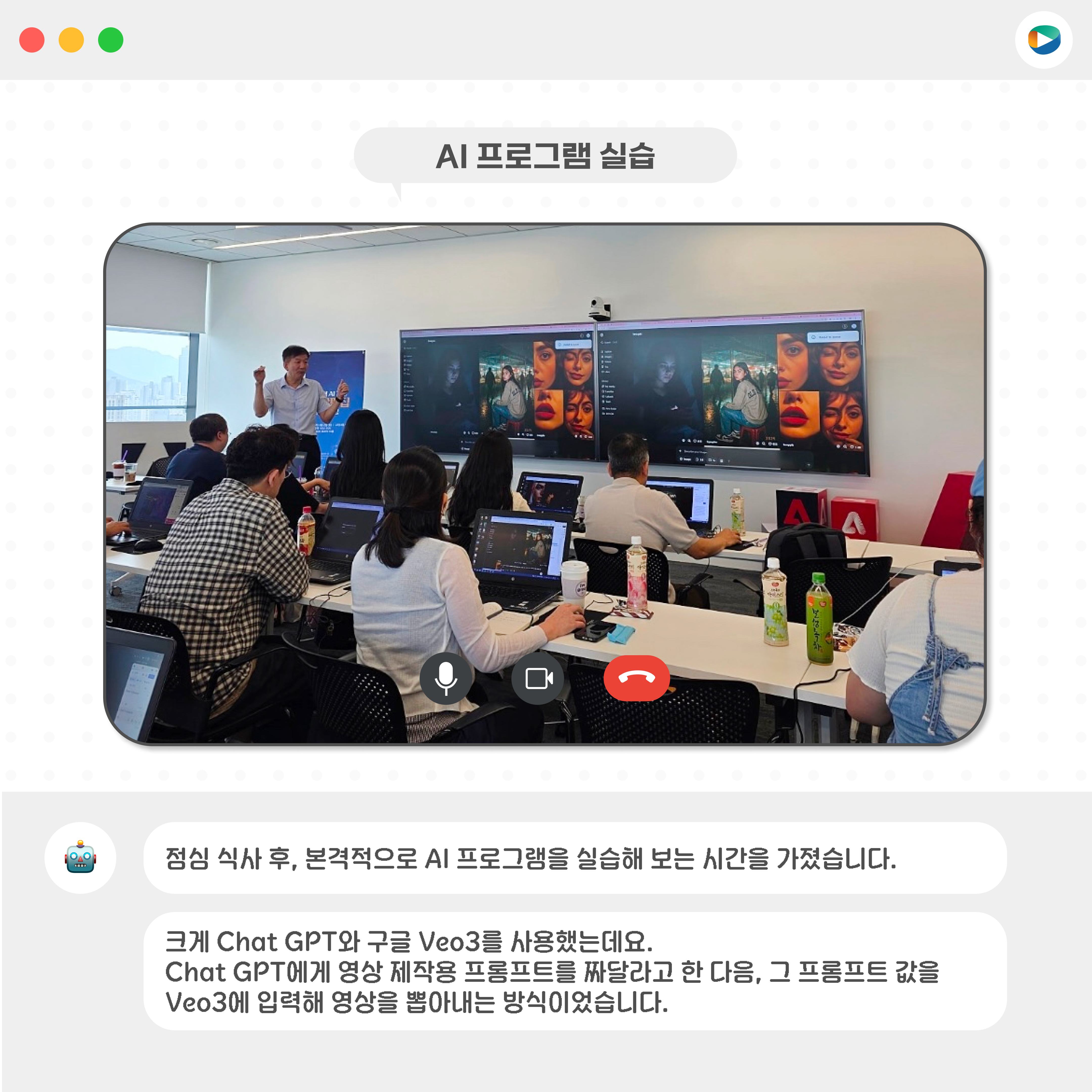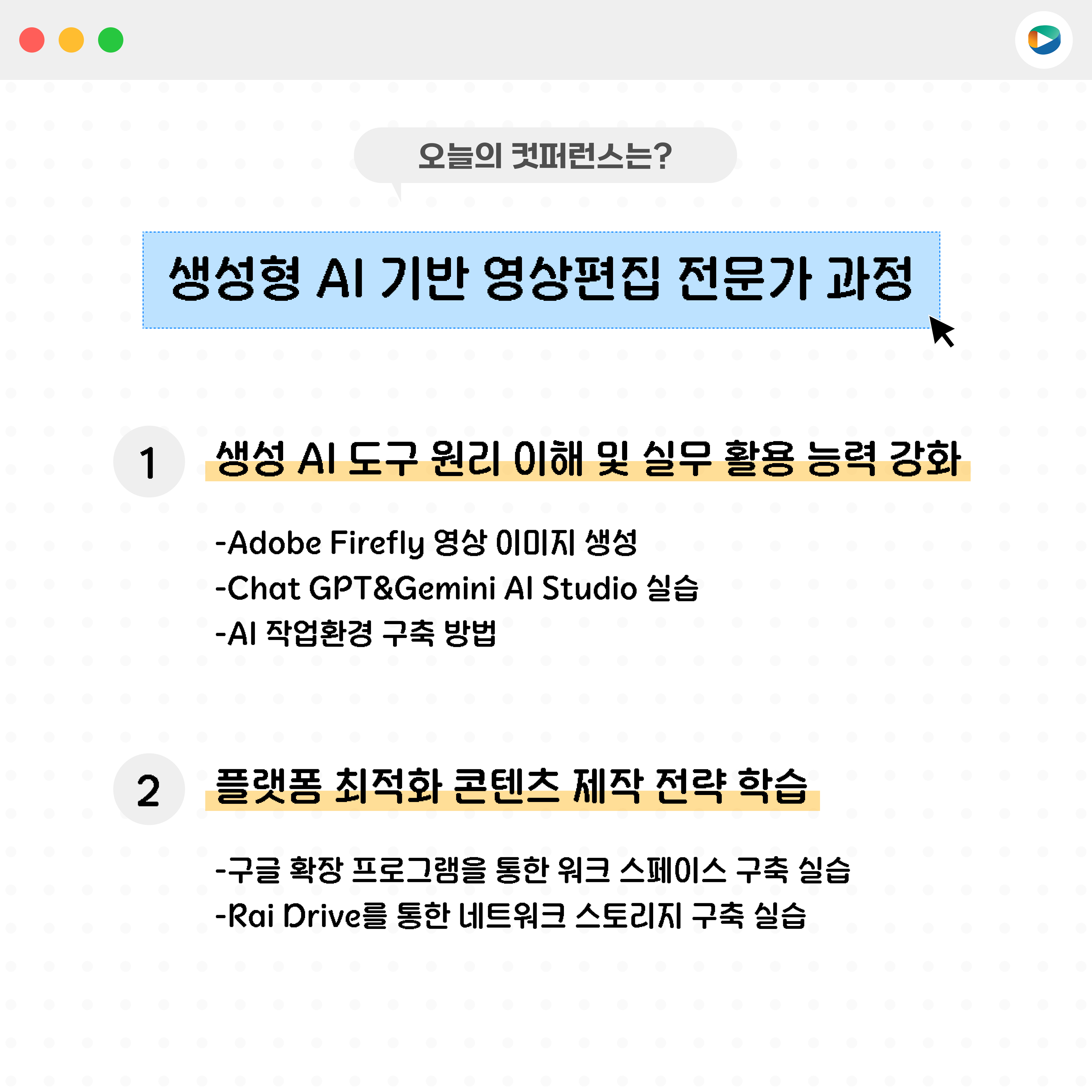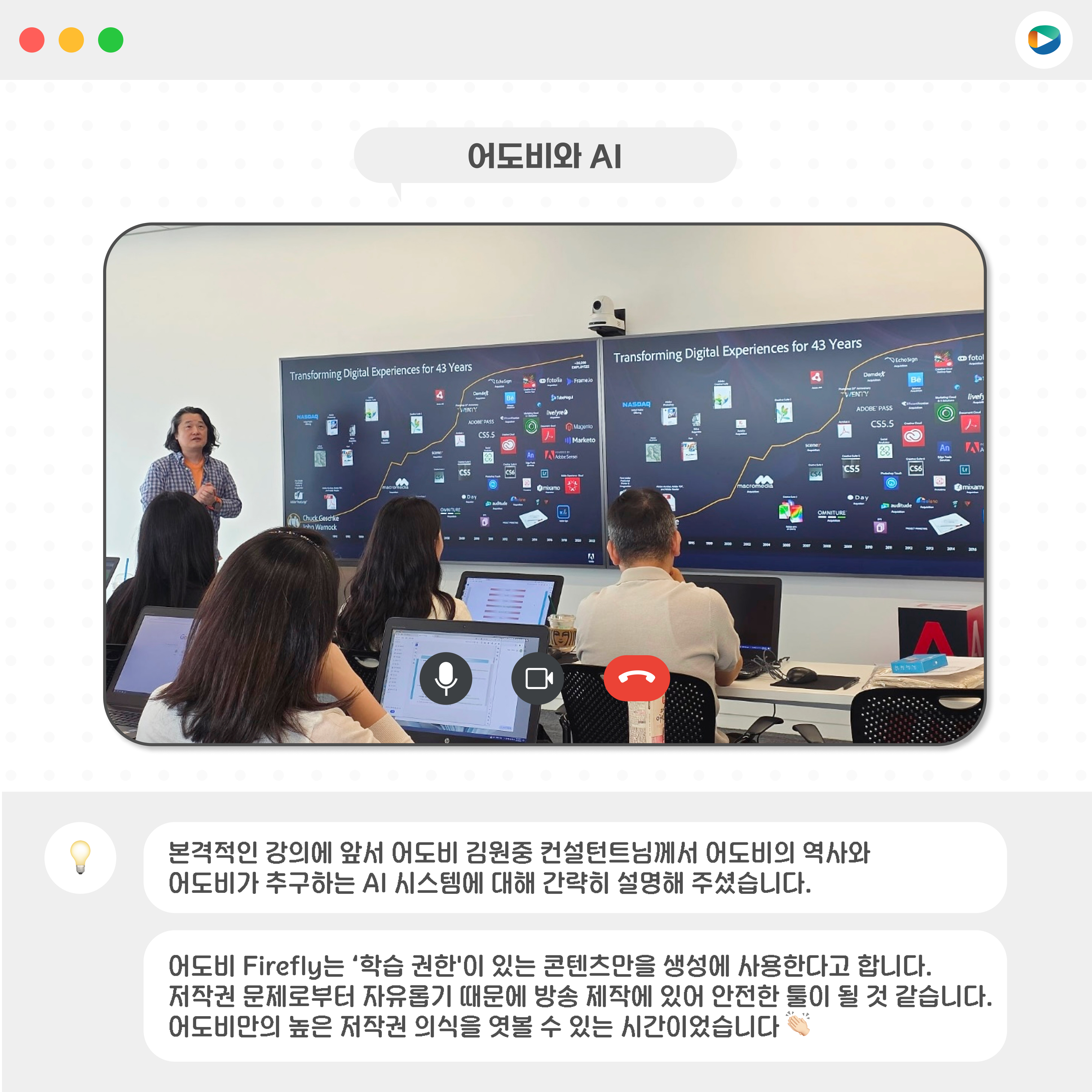 지난 8월 2일(토)과 9일(토), 양일간 어도비 코리아 강의실에서 「생성형 AI 기반 영상편집 전문가 과정」이 진행되었습니다.