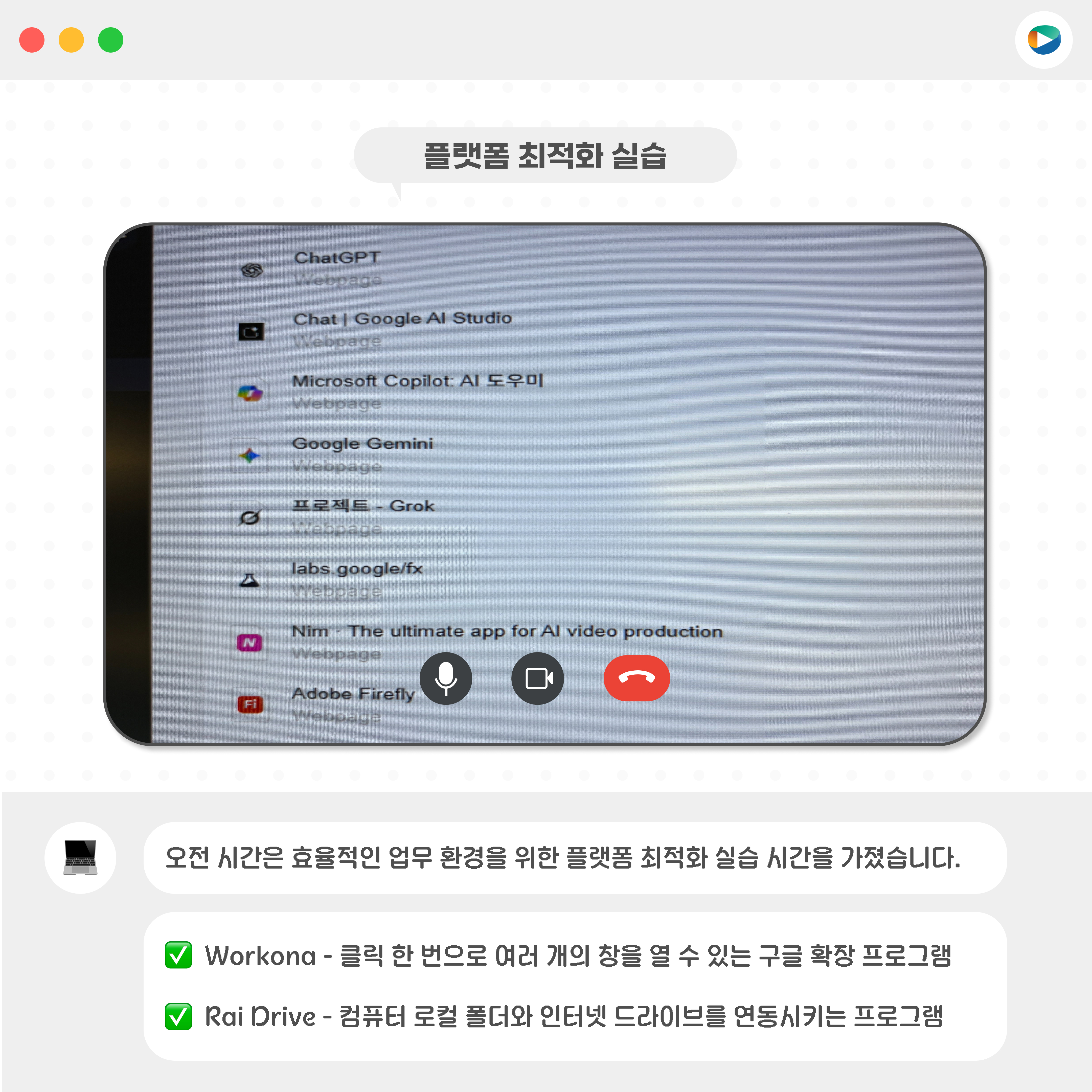 이번 과정에는 총 28명(1차 15명, 2차 13명)이 참여했으며, 김병환 강사님이 생성형 AI의 개념과 최신 동향, 그리고 영상편집 업무 프로세스에서 활용할 수 있는 다양한 프로그램들을 소개하는 시간을 가졌습니다.
