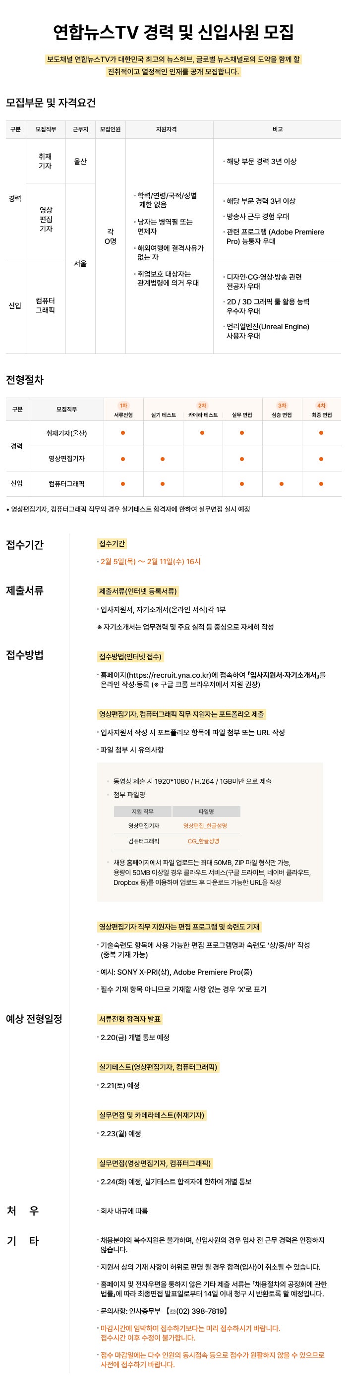[연합뉴스TV] 경력 및 신입사원 모집